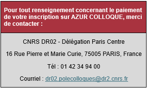 Les frais d'inscription couvrent la participation aux journées, les repas de midi, les pauses café, le cocktail du mercredi soir et le diner de gala du jeudi soir (sur inscription).