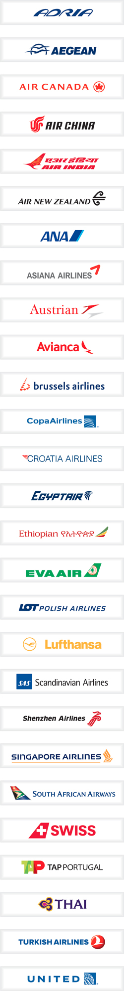 Participating Airlines are: ANA, Adria Airways, Aegean Airlines, Air Canada, Air India, Air New Zealand, Asiana Airlines, Austrian Airlines, Brussels Airlines, Croatia Airlines, EVA Airways, EgyptAir, Ethiopian Airlines, LOT Polish Airlines, SWISS, Scandinavian Airlines, Shenzhen Airlines, Singapore Airlines, South African Airways, TAP Portugal, THAI, Turkish Airlines, United